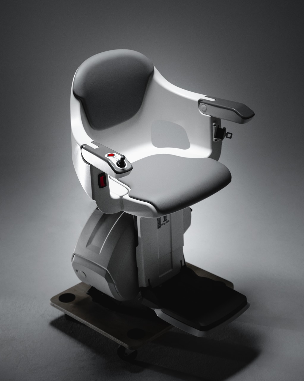 A stair chair designed for straight stairs with a journey length of 5 meters, immediate supply, load capacity of 160 kg, and is suitable for both external and internal stairs.